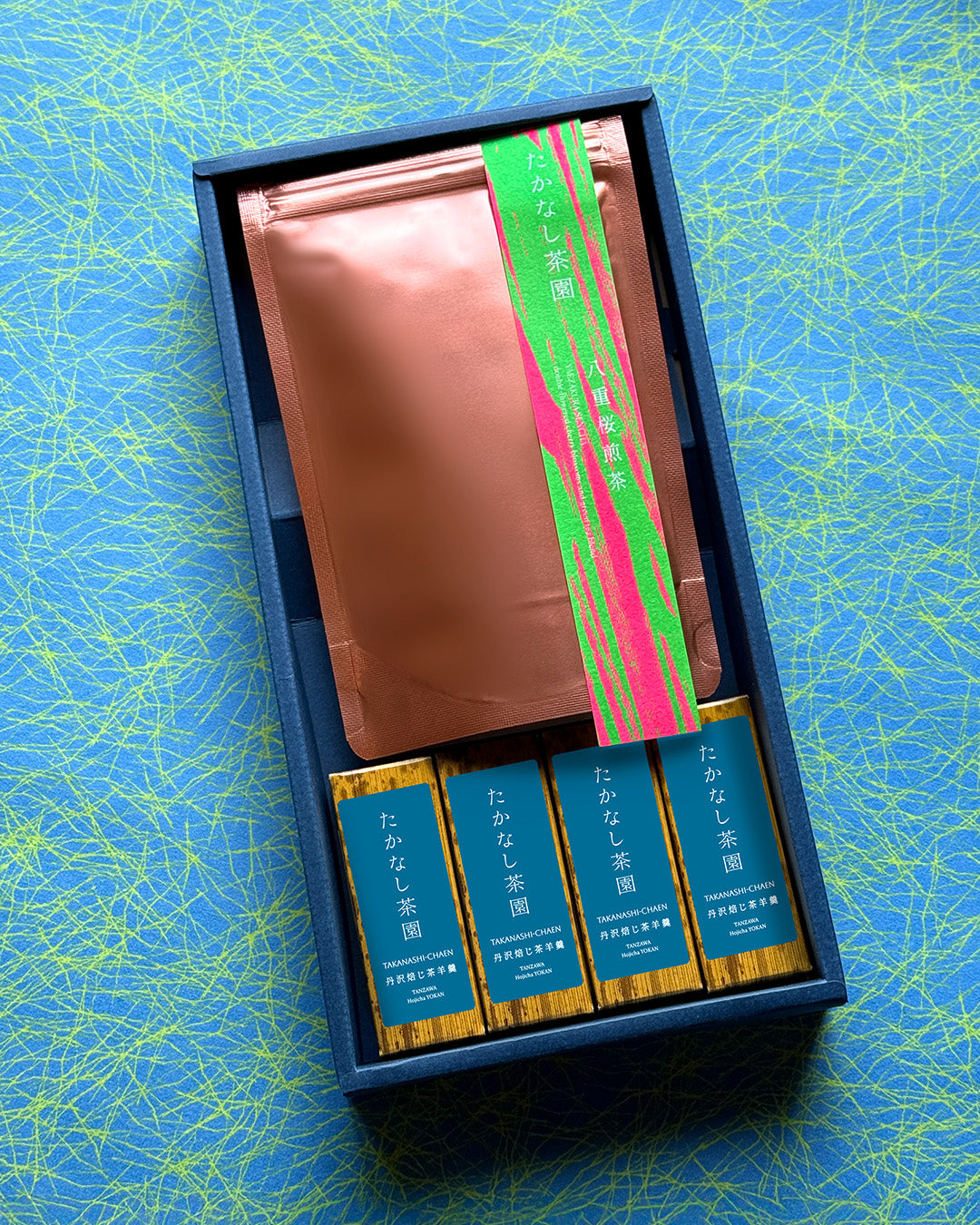 八重桜煎茶(1袋)と丹沢焙じ茶羊羹 (ミニサイズ4本)のセット